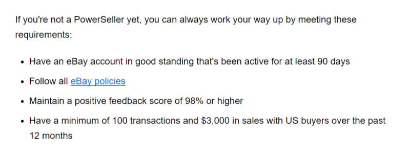 eBay establishes the list of KPI for its sellers: