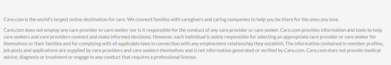 For example, a globally known caregivers Internet marketplace Care.com is not responsible for the conduct of any care provider, and it only works as a multi vendor platform to find them. For this, it provides an appropriate disclaimer:
