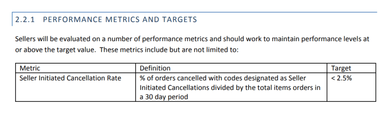 Sears in its Seller Performance Guide describes the standards and requirements its vendors should match: