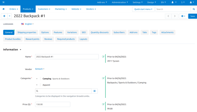 In version 4.15.1, you can quickly see what changes vendors made to their products, and compare old texts and values to the new ones. Product moderation is faster and more convenient, as the administrators know what to focus on.