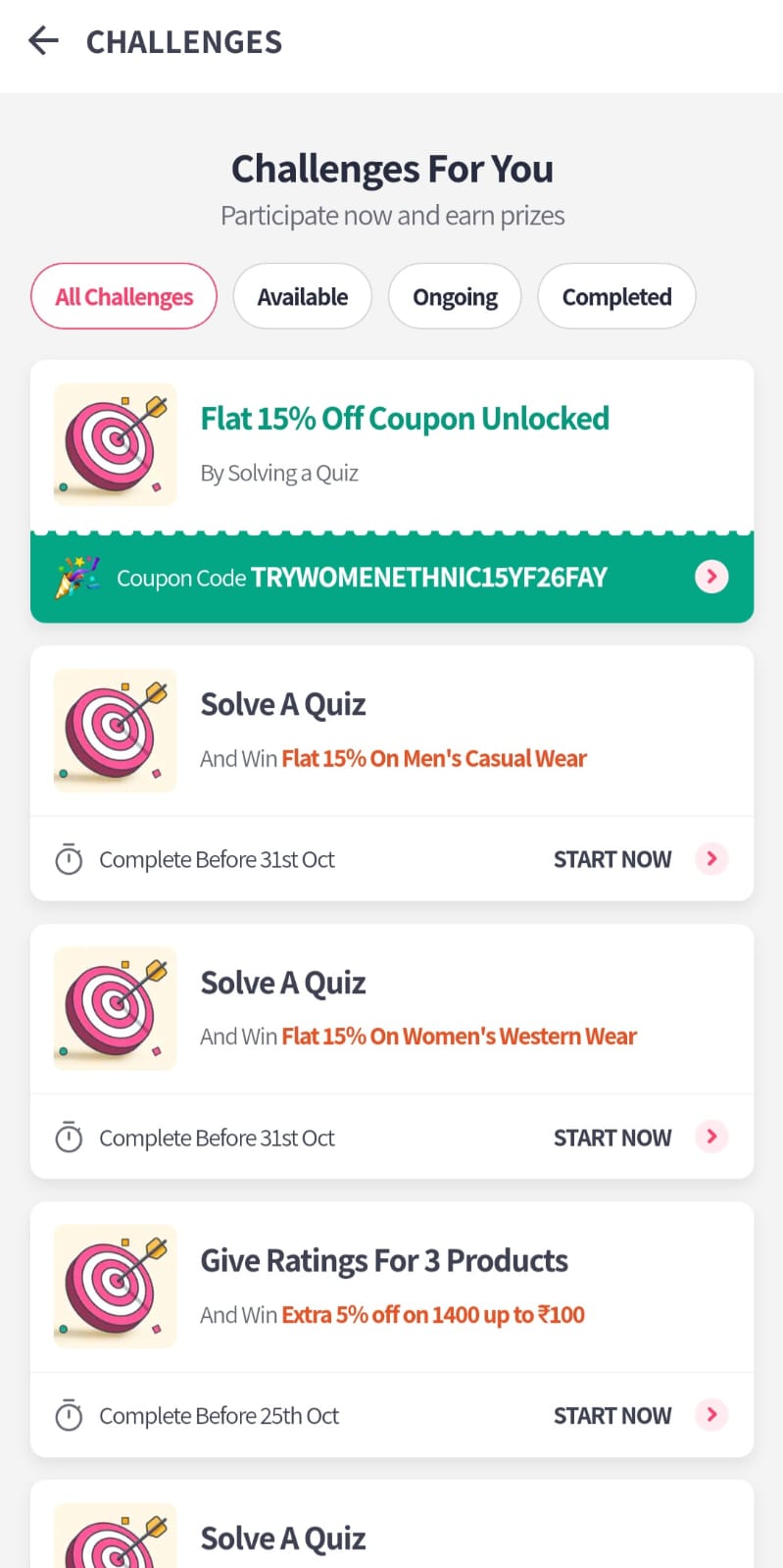Another example is from an eCommerce website called Myntra. Here, you can see how they get their customers involved in games and other challenges to get the coupons. This can be incorporated into your loyalty programs for better results this year.
