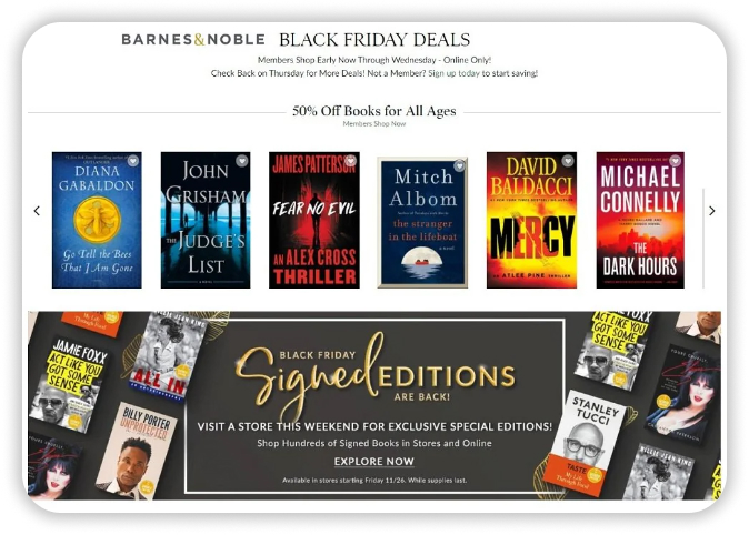 Barnes&Noble bookstore provides discounts, but all book lovers wait for their Black Friday deals for something else entirely. During this period, the store sells exclusive titles signed by the authors themselves.