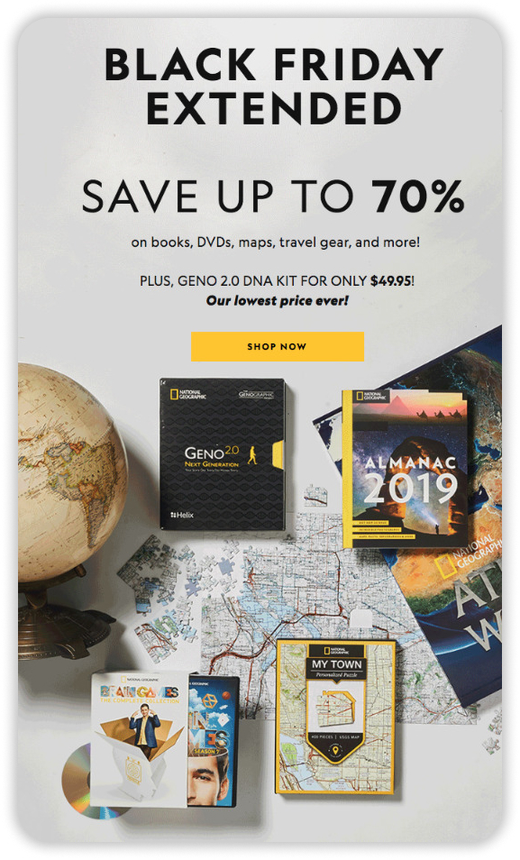 For example, National Geographic, an American pay television network, uses this marketing strategy, providing a discount on their print products, as well as special editions on DVD, travel gear, merch and so on.