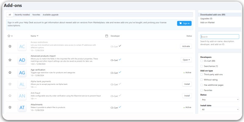 Built-in CS-Cart Add-On market
