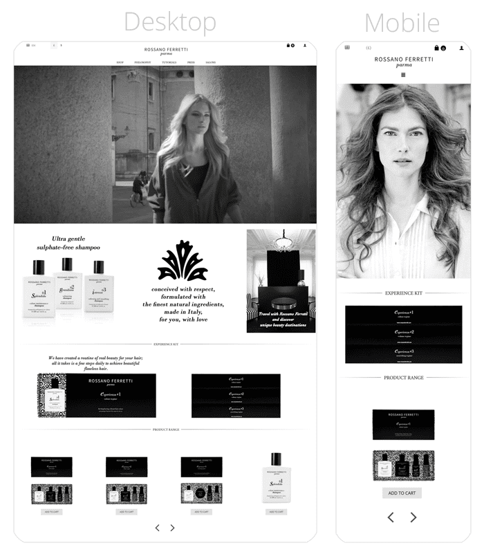 Rossano Ferretti is known for his special style of cutting hair, where the stylist cuts along the natural fall of the hair. Rossano Ferretti has already founded over 20 brick-and-mortar salons all over the world, as well as an online store based on CS-Cart, likely supported by experienced eCommerce consultants.