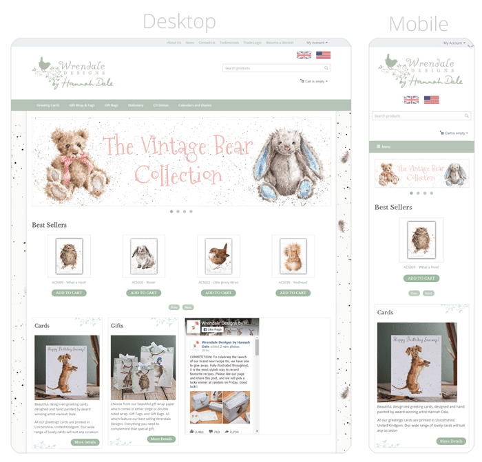 Wrendale Designs uses CS-Cart 4.1.5 and is packed with a custom storefront theme based on the default Responsive theme: