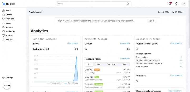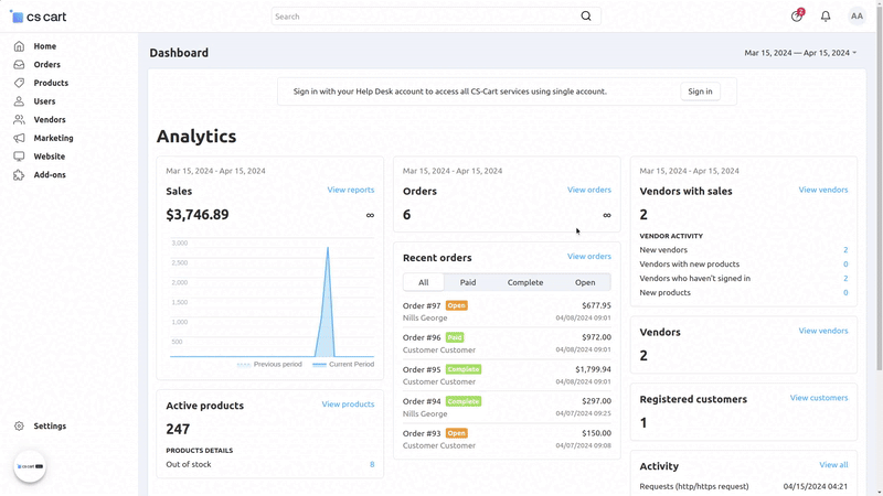 We redesigned the CS-Cart admin panel to help you start faster and scale smarter. The panel is mobile-friendly, which lets store owners manage their online projects on the go.