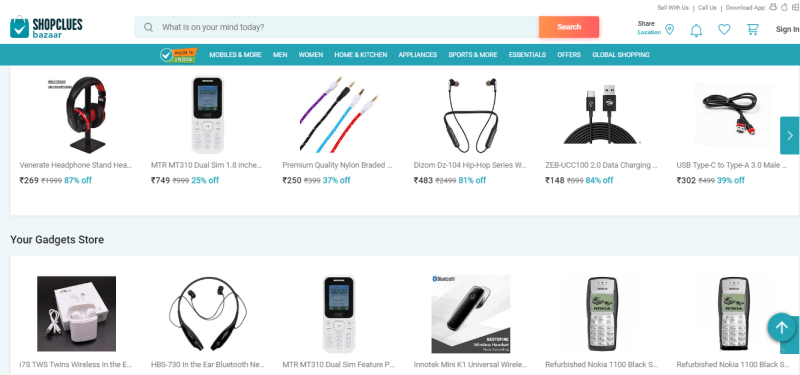 Aim to have only the most vital elements on each page of your marketplace. To do this, have more white space. These are empty spaces between text and graphic elements. White space improves readability and comprehension of information. It allows your CTAs to be more visible and clickable. See how ShopСlues makes use of white space below: