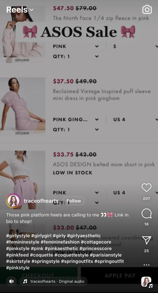 You can also use influencers to spread the word about discounts or sales you’re running. ASOS did that with Trace, too: