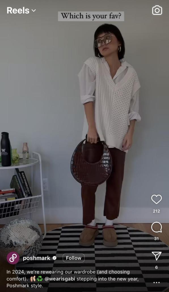 After you get the UGC, feature the best ones across your marketing channels—websites, social media posts, and emails. That’s how user-generated content for eCommerce turns into a powerful growth engine. Here’s an example from Poshmark on Instagram:
