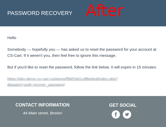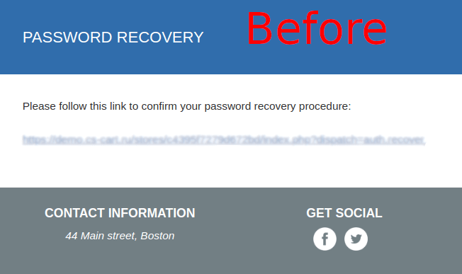 - The password recovery email now contains the recovery link that will work for 15 minutes.