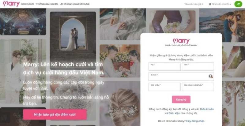 Marry.vn is a service marketplace in Vietnam. They offer wedding services: ideas, organization, planning, and everything. This is the largest website in Vietnam for wedding planning. Here, you can order wedding promotion, plan, find some cool wedding ideas, choose a restaurant, manage your guests, hire a professional for wedding preparations and related jobs, and whatnot. Over 8,000 wedding services providers are at your disposal here.