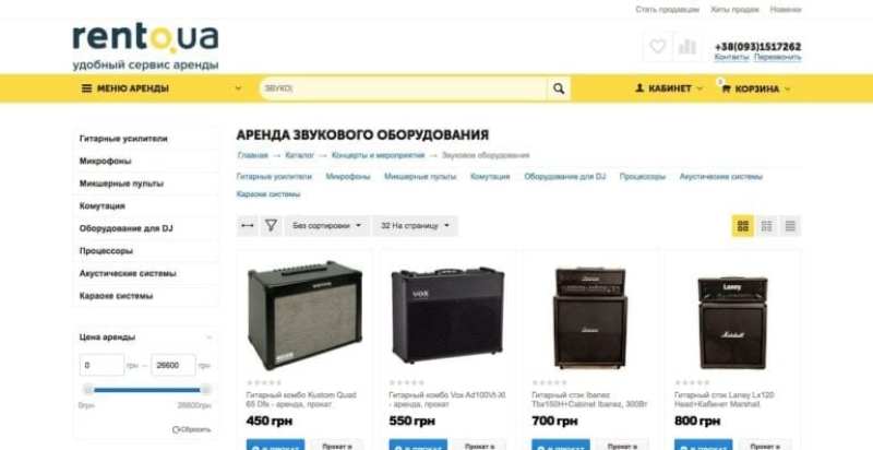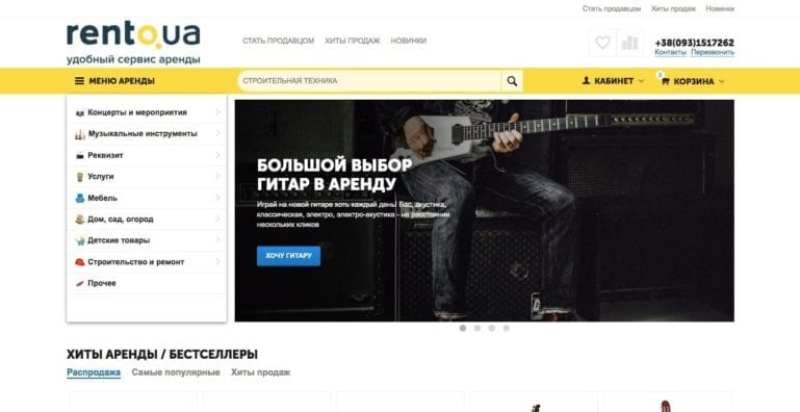 This is a service marketplace from Ukraine, on which clients can rent musical instruments, equipment for shows, building implements, and order other services. There are currently about 1,000 items for rent and services for ordering.