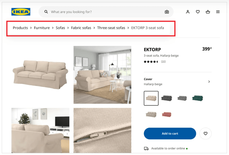 Consider Ikea, an eCommerce website that sells home goods, from furniture to kitchenware. An intuitive navigation path will look like this:
