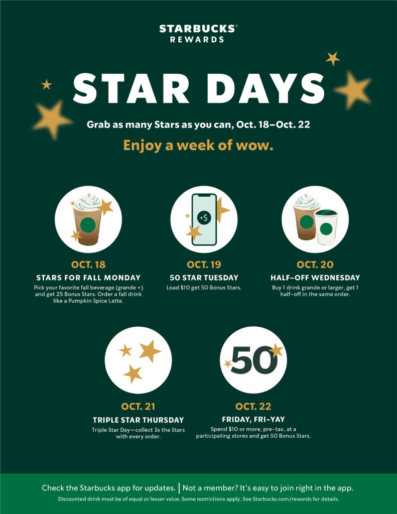 As BFCM approaches, announce special rewards for customers who reach specific point milestones during the sale period. Also, run bonus points events for customers during special holidays. For example, Starbucks organizes points-collecting events to double or triple their points.