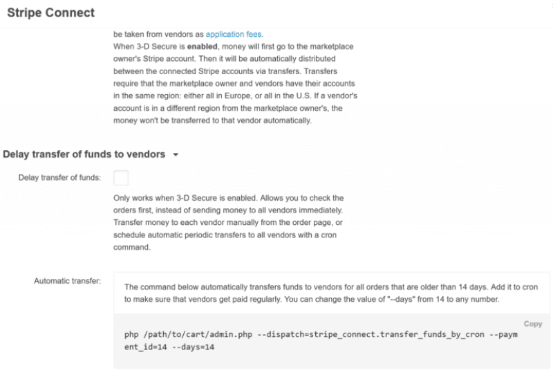 The settings of these payment methods now have a CRON command. If you add it to CRON and run it regularly, money for orders will be transferred to vendors automatically if an order is old enough. For Stripe Connect, you need to configure that CRON command to automate things. But PayPal Commerce Platform will only hold the money for up to 28 days, and then transfer it to vendors automatically.