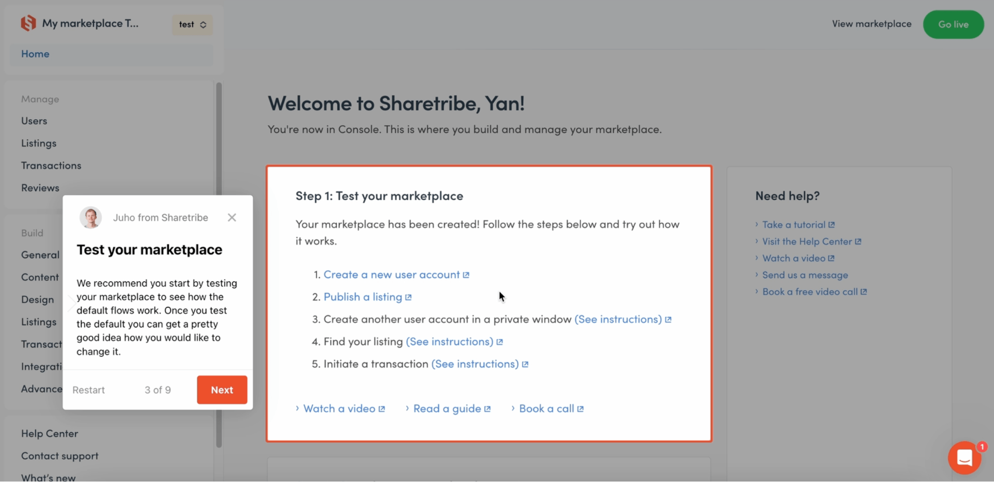 Sharetribe’s welcoming onboarding process acts as a roadmap for new users. It introduces functions in an accessible manner, ensuring you can start building your business idea without delay. This smooth start is crucial for maintaining enthusiasm and focus on your goals.