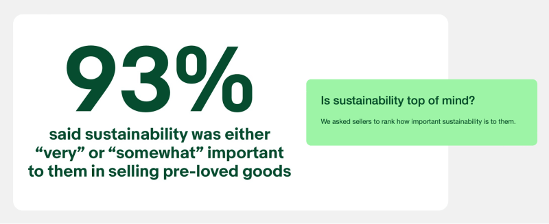 But here’s the good news: A whopping 93% cite that sustainability is either “very” or “somewhat” important to them in selling pre-owned items.